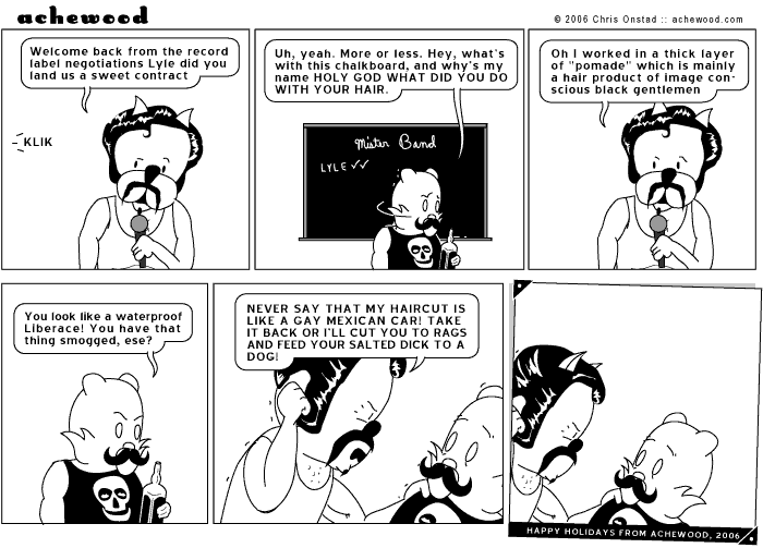 Pat's male pattern baldness resembles a pinned-on yarmulke.